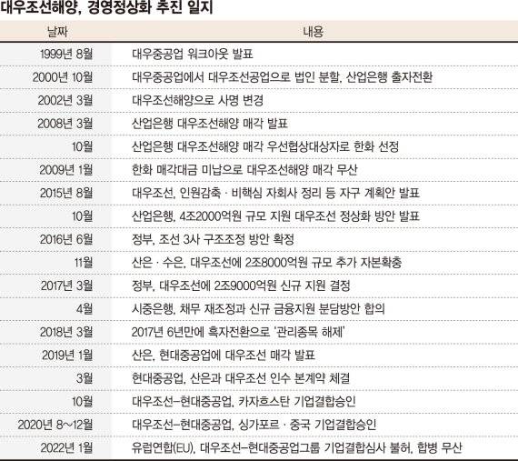 15일 관련업계와 금융권 등에 따르면 대우조선의 경영정상화를 위해선 우선 경쟁력 확보가 최우선 과제로 꼽힌다. 지난 2019년 이후 조선업계 수주가 활발하면서 업황개선이 기대됐으나 최근 원자재 가격 상승으로 난관에 처했다는 게 업계 설명이다.