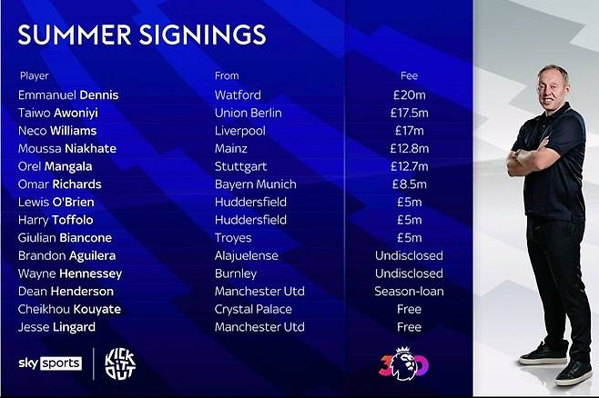 노팅엄 포레스트는 23년 만에 프리미어리그로 승격한 가운데, 스쿼드의 경쟁력을 갖추고자 올여름 폭풍 영입 행보를 이어왔다. 이적시장 전문 매체 '트랜스퍼마르크트' 기준 15명을 영입하는 동안 1억 1,855만 유로(약 1,587억 원)를 지출했다. 이는 프리미어리그 20개 구단 중 첼시와 아스널에 이어 세 번째로 최다 지출이다. 영입 규모만 보면 빅클럽이며, 사실상 1군 스쿼드를 통으로 바꿨다고 해도 과언이 아닐 정도다.