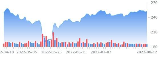 이 회사 분석가 켈리 배니아는 인플레이션 환경에서 투자자들이 할인 소매점에 몰리면서 DG의 영업이 활발하지만 이는 이미 주가에 정확하게 반영되어 있다고 밝혔다.