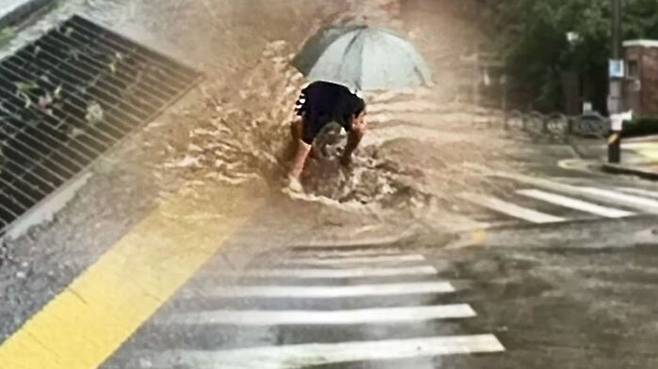 맨손으로 쓰레기 파냈다..피해 확산 막은 '빗물받이 의인'