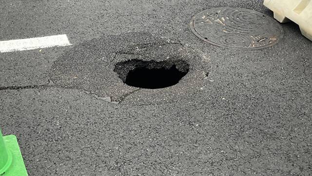 '지름 30cm에서 40cm 정도의 땅꺼짐이 발생했다'는 신고를 받고 출동한 소방당국은 사고 지점 주변의 차량 통행을 통제하고 있습니다.