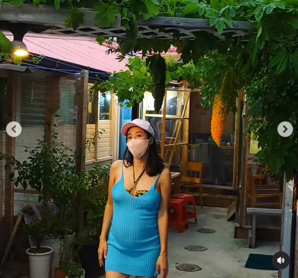 사진에는 현재 임신 중인 전혜빈이 배가 훤히 드러나는 원피스를 입고 나온 연휴 인증샷이 담겼다.