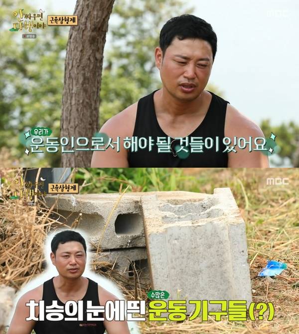 '안다행' 양치승, 섬 생활에도 운동 기구 제작.. 성훈X박준형 '충격'