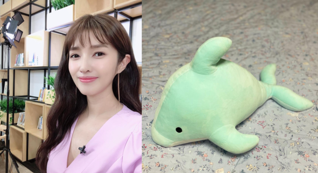 공개된 사진 속에는 침대 위에 놓인 미니 돌고래 인형이 담겼다. 이는 드라마 '이상한 변호사 우영우'에서 극 중 주인공 '우영우'가 좋아하는 돌고래를 연상케 한다.