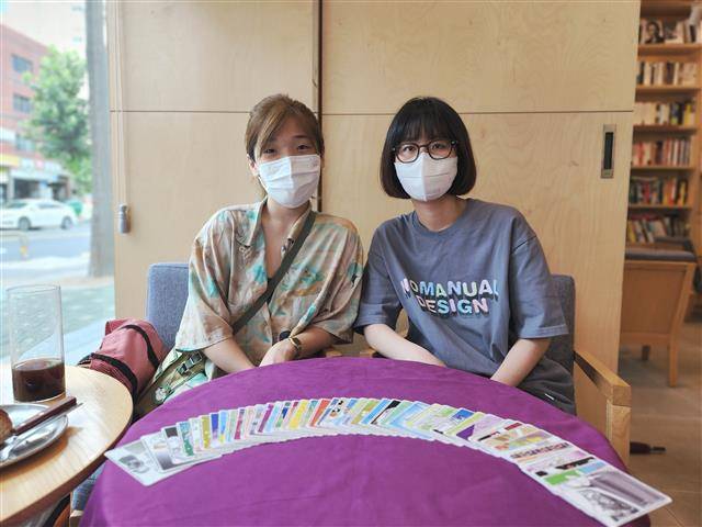 이런 사연을 담아 제작한 타로카드 51장 중 두 사람은 가장 마음에 드는 한 장으로 ‘미용사와 손님의 나이는 비례한다’는 제목의 카드를 꼽았다. “어느 미용사가 나이 든 손님은 나이든 미용사를 찾고 젊은 손님은 젊은 미용사를 찾는다고 말했어요. 단절된 공간에 사는 우리는 서로를 ‘다른 종족’이라고 생각하지만 자세히 보면 소통할 수 있는 지점이 있다는 걸 알리고 싶어요.”