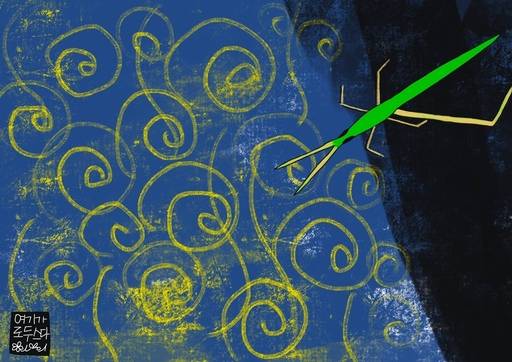 방아깨비가 하나 남은 뒷다리로 자기 몸보다 커다란 춤을 추듯이.