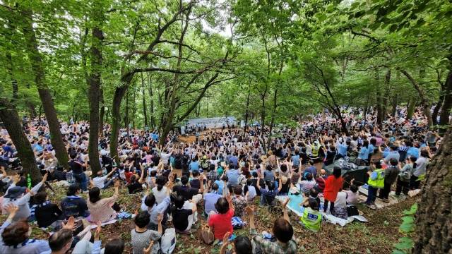 사랑의교회(오정현 목사)는 14일 경기도 과천시 청계산에서 산상기도회를 열고 나라와 민족의 회복, 코로나와 수해로 고통받는 이웃들의 치유를 위해 간절히 기도했다고 15일 밝혔다. 기도회에는 교회 성도 3500여명이 직접 산에 올라 함께 기도했고 온라인 및 인터넷 생중계로 6000여명, 대학·청년부 등 교회 본당 및 부속예배실에서도 4000여명이 동참하는 등 총 1만3500여명이 마음을 모았다. 기도회는 코로나19로 3년 만에 열렸다.