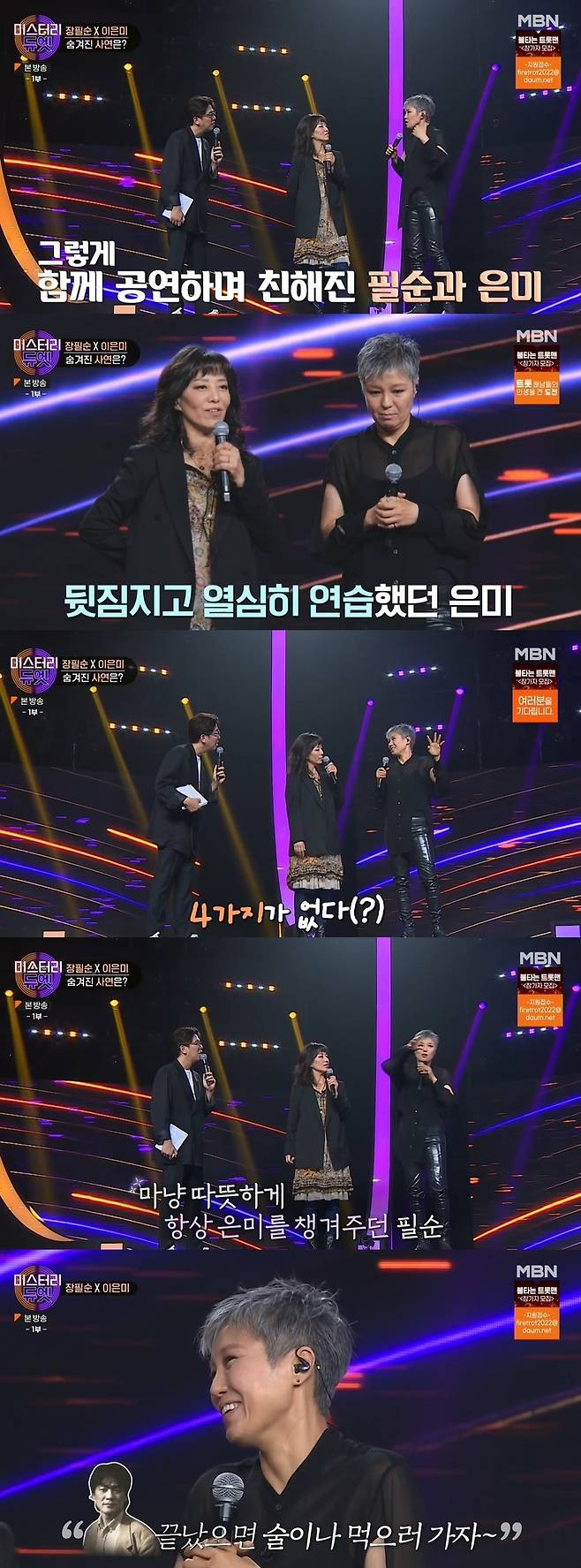 8월 15일 방송된 MBN '미스터리 듀엣'에서는 가수 장필순과 이은미의 레전드 듀엣 무대가 성사됐다.