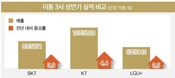 올해 상반기 실적에서도 KT가 근소한 차로 경쟁사를 따돌렸다.
