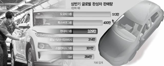 현대차(005380)그룹이 올해 상반기 완성차 판매량에서 처음으로 전 세계 3위에 올라섰다.