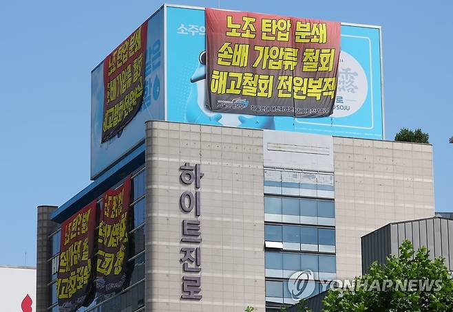 하이트진로 본사에 걸린 대형 현수막