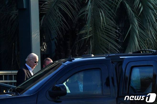 (키아와 아일랜드 AFP=뉴스1) 손승환 기자 = 15일(현지시간) 미국 사우스캐롤라이나주 키아와 섬에서 조 바이든 미국 대통령이 차에 오르는 모습이다. 바이든 대통령은 지난 10일 키아와 섬으로 여름 휴가를 떠났다.