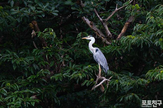 곤지암천에서 만난 왜가리가 밤나무에서 휴식 중.