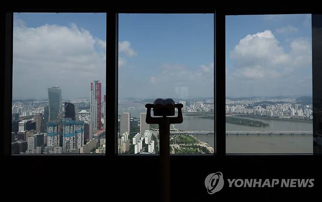 (서울=연합뉴스) 이지은 기자 = 16일 오전 서울 여의도 63스퀘어 전망대에서 바라본 하늘이 맑다. 2022.8.16