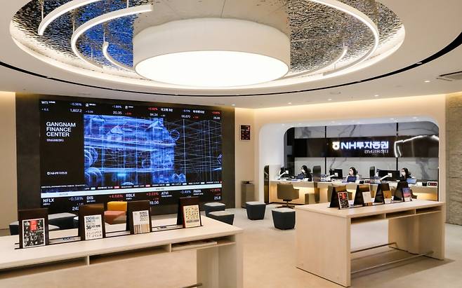 NH투자증권이 고객들의 일상생활과 필요에 맞춘 미래형 점포인 '강남금융센터'를 16일 오픈했다. 강남금융센터는 기존 고액자산가(HNW)를 포함, 강남역 인근 투자에 관심이 높은 직장인과 늘어나는 비대면 고객을 타깃으로 다양한 고객 니즈를 아우르는 미래형 센터 모습을 플래그십 형태로 구현했다.