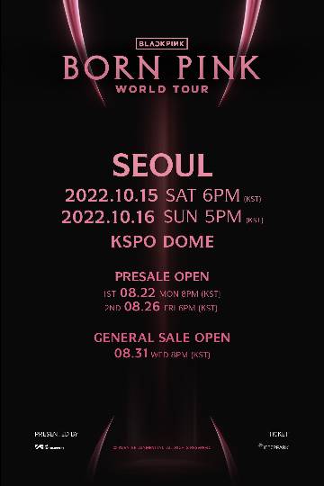 블랙핑크는 오는 10월 15일과 16일 양일간 서울 올림픽공원 케이에스포 돔(KSPO DOME)에서 '블랙핑크 월드 투어[본 핑크] 서울(BLACKPINK WORLD TOUR [BORN PINK] SEOUL)'을 개최한다.