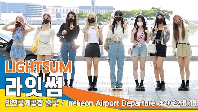 가수 라잇썸(LIGHTSUM) 멤버 상아, 초원, 나영, 히나, 주현, 유정, 휘연, 지안이 8월 16일 오후 미국 로스앤젤레스에서 진행되는 'KCON in LA' 공연 참석 차 인천시 중국 인천국제공항을 통해 출국하고 있다.