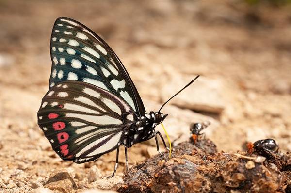| ▲ 홍점알락나비. 오소리똥에서 무기질을 먹고 있다. |