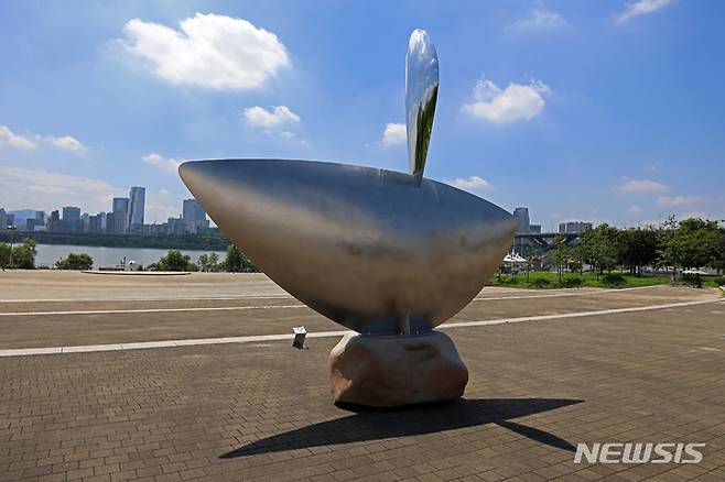 [서울=뉴시스] 박진희 기자 = K-Sculpture 주최하는 2022한강조각프로젝트 '낙락유람(樂樂遊覽)' 개막을 앞둔 16일 서울 성동구 뚝섬한강공원 음악분수 광장 특설 전시장에서 안병철 작가의 '생명-영(影) XXII' 작품이 전시되어 있다. 올해 두번째 열리는 2022한강조각프로젝트는 ‘지붕 없는 초대형 조각갤러리’를 표방하며 향후 3년간 한강조각프로젝트를 개최하여 K-Sculpture를 국내외 알리고 있다. 2022.08.16. pak7130@newsis.com