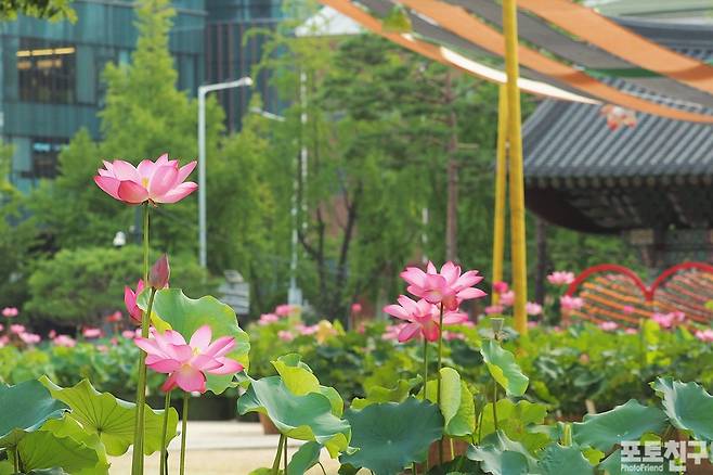조계사에 제8회 연꽃 축제가 7~8월에 걸쳐 열리고 있습니다.
