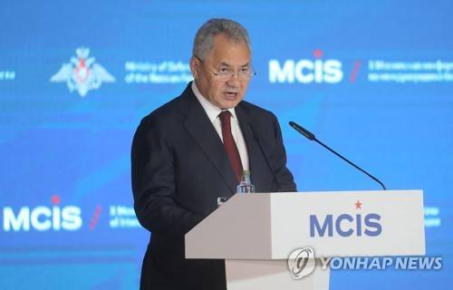 epa10123953 Russian Defence Minister Sergei Shoigu speaks during the Moscow Conference on International Security (MCIS) at the Patriot Park in Kubinka, Moscow region, Russia, 16 August 2022. The 10th Moscow Conference on International Security takes place on 15-16 August at the Russian Armed Forces' Patriot Park. EPA/MAXIM SHIPENKOV