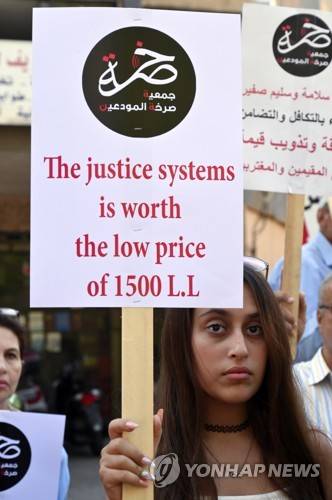 epa10124032 A protester carries a placard during a protest in solidarity with the arrested depositor Bassam al-Sheikh Hussein, an armed man who took hostages at a Federal bank, in front of the Justice Palace in Beirut, Lebanon, 16 August 2022. Bassam al-Sheikh Hussein stormed a Hamra-based bank while armed on 11 August, and kept employees and clients as hostages demanding to be given his deposits. Federal Bank announced in a statement on 12 August that it would temporarily close its Hamra branch, where Bassam al-Sheikh Hussein held hostages in an hours-long standoff. EPA/WAEL HAMZEH