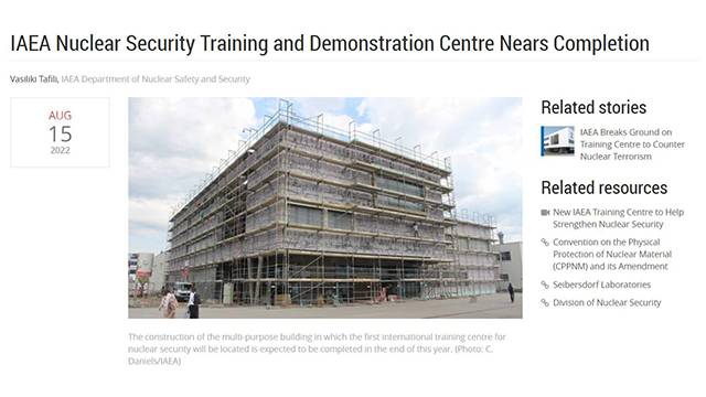 IAEA는 15일(현지시간) 보도자료를 통해 오스트리아 빈 인근의 자이버스도르프에서 지난해 착공한 국제 원자력안전 교육·시연센터(NSTDC)가 올해 말까지 완공된다고 밝혔습니다.