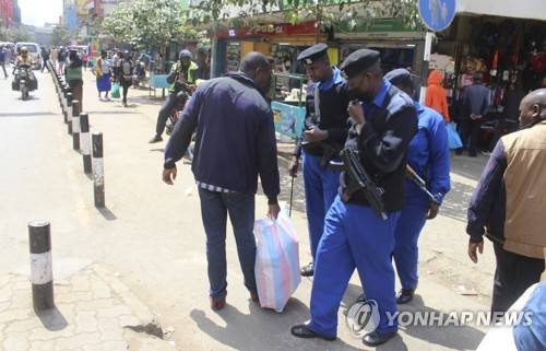 A day after declaration of presidential election results, police officers patrol streets of Kenya's capital Nairobi, Tuesday, Aug. 16, 2022, after William Ruto was declared 5th president of Kenya Monday by the Electoral Commission. (AP Photo)