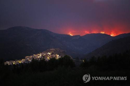 epa10124157 A wildfire threatens the village of Bejis, Castellon, eastern Spain, 16 August 2022. Around 200 firefighters were deployed to tackle a wildfire that prompted the evacuation of hundreds of people. EPA/BIEL ALINO