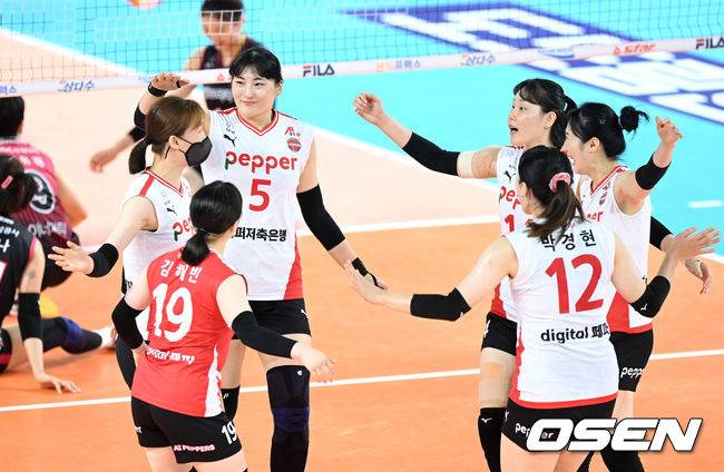 1세트 페퍼저축은행 선수들이 득점에 환호하고 있다. 2022.08.16 /sunday@osen.co.kr