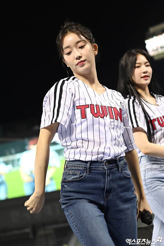 (엑스포츠뉴스 잠실, 박지영 기자) 16일 오후 서울 송파구 잠실야구장에서 열린 '2022 신한은행 SOL KBO리그' 삼성 라이온즈와 LG 트윈스의 경기, 클리닝타임 때 스테이씨 수민이 특별 공연을 선보이고 있다.