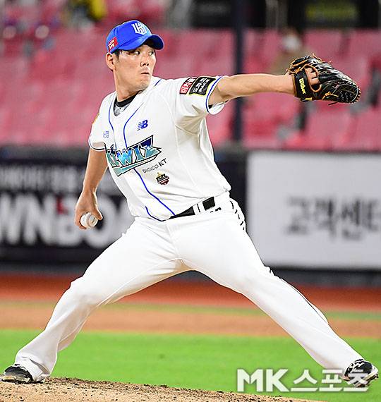 9회초에 등판한 kt 김재윤이 역투하고 있다.