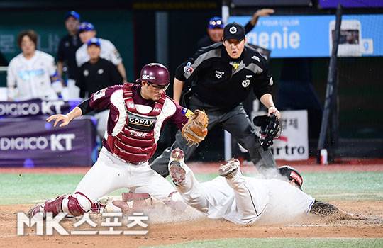 장성우 '경기를 끝내는 끝내기 득점' [MK포토]