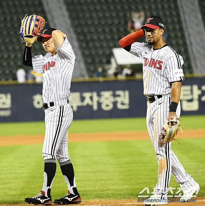 2022 KBO리그 LG 트윈스와 삼성 라이온즈의 경기가 16일 잠실구장에서 열렸다. 경기에서 승리한 LG 선수들이 기뻐하고 있다. 잠실=박재만 기자 pjm@sportschosun.com/2022.08.16/