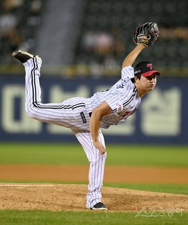 16일 서울 잠실야구장에서 ‘2022 신한은행 MY CAR KBO리그’ 삼성 라이온즈와 LG 트윈스 경기가 열렸다. 9회초 등판해 1이닝을 무실점으로 막으며 세이브를 따낸 LG 고우석이 역투하고 있다.