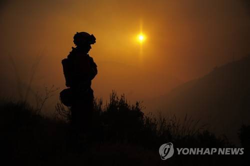 epaselect epa10124155 A firefighter looks on as a wildfire threatens the village of Bejis, Castellon, eastern Spain, 16 August 2022. Around 200 firefighters were deployed to tackle a wildfire that prompted the evacuation of hundreds of people. EPA/BIEL ALINO