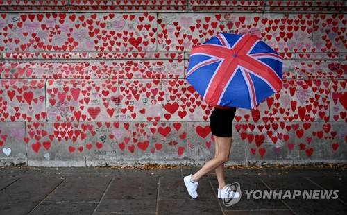 epa10124346 A pedestrian walks past The National Covid Memorial Wall in London, Britain, 16 August 2022. The British government announced it is to begin its new Omicron booster jab roll out. Over 25 million Britons will be offered the next-generation Omicron vaccine in autumn. Britain is the first country to approve the new vaccine. EPA/ANDY RAIN