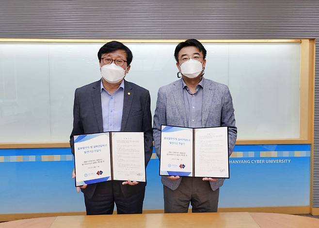 11일 한양사이버대학교 실버산업학과(학과장 김신영 교수)와 월간파워코리아(발행인 백종원 대표)의 홍보협약식 및 실버산업학과 발전기금 전달식이 한양사이버대학교에서 개최됐다.