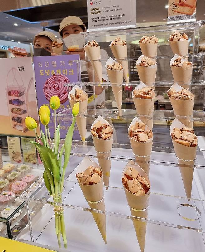 [부산=뉴시스] 부산 신세계 센텀시티는 오는 9월 15일까지 백화점 지하1층 식품관에서 '단백질과자점' 팝업스토어를 운영한다고 17일 밝혔다. 단백질 과자점은 기름에 튀지기 않고 오븐에 구웠으며, 0kcal 대체당을 사용하고 밀가루 대신 동물성 식물성 단백질로 만들어 평균 7g의 단백질 함량이 들어 있는 고단백 건강 디저트다. (사진=신세계센텀시티 제공) 2022.08.17. photo@newsis.com