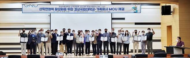 경상국립대(GNU·총장 권순기) 산학연협력 선도대학 육성사업단(이하 LINC 3.0 사업단)이 지난 16일 경상국립대 가좌캠퍼스 산학협력관 회의장에서 산학공동 기술개발과제 연구책임자와 참여기업 대표가 참석한 가운데 산학연협력 활성화를 위한 경상국립대-가족회사 MOU 협약식을 개최했다.