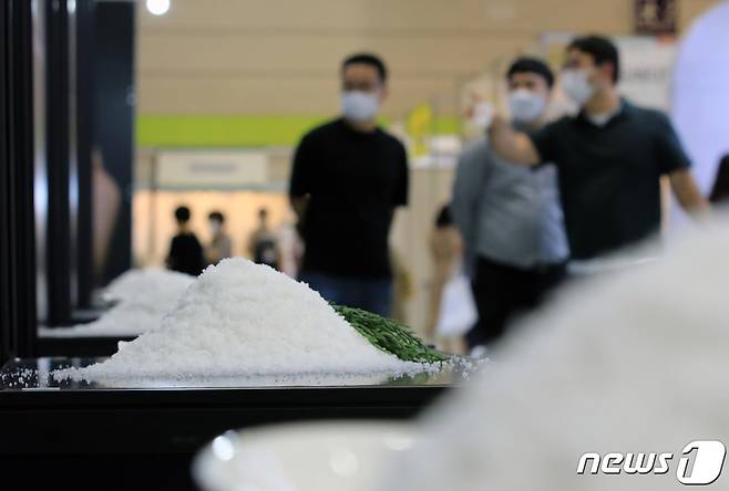 (서울=뉴스1) 구윤성 기자 = 17일 오전 서울 강남구 코엑스에서 열린 '2022 한가위 명절선물전·소금박람회'에서 참관객들이 천일염을 둘러보고 있다. 2022.8.17/뉴스1