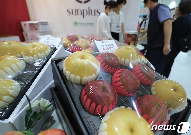 (서울=뉴스1) 구윤성 기자 = 17일 오전 서울 강남구 코엑스에서 열린 '2022 한가위 명절선물전·소금박람회'에서 참관객들이 명절선물을 살펴보고 있다. 2022.8.17/뉴스1