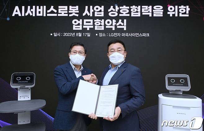 이번 협약을 통해 양사는 LG전자의 고도화된 로봇 제조 역량과 KT의 서비스 분야 역량의 결합을 통해 신사업 기회 발굴, 차세대 로봇 연구개발을 위한 협력체계 마련, 국내 서비스로봇 산업의 경쟁력 강화를 위한 협력 플랫폼 구축, 정부의 로봇 과제에 대한 협력 등을 진행할 예정이다. (LG전자 제공) 2022.8.17/뉴스1