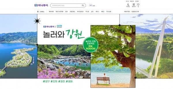 하나투어는 강원도관광재단과 함께 강원도 특정지역에 편중된 관광수요를 분산시키고자 인제, 화천, 철원, 양구를 대상으로 한 기획전을 준비했다. 지역 소도시 관광 콘텐츠를 활용해 지속가능한 여행의 가치를 전달하고 고른 지역 발전을 도모한다는 취지다. 기획전 테마는 강원도 소도시에서 설렘 가득한 새 여행을 경험한다는 의미로 ‘안녕, SODOSI’로 정했다. 상품은 인제, 화천 티켓텔과 철원, 양구 버스투어 상품 등으로 구성했다.
