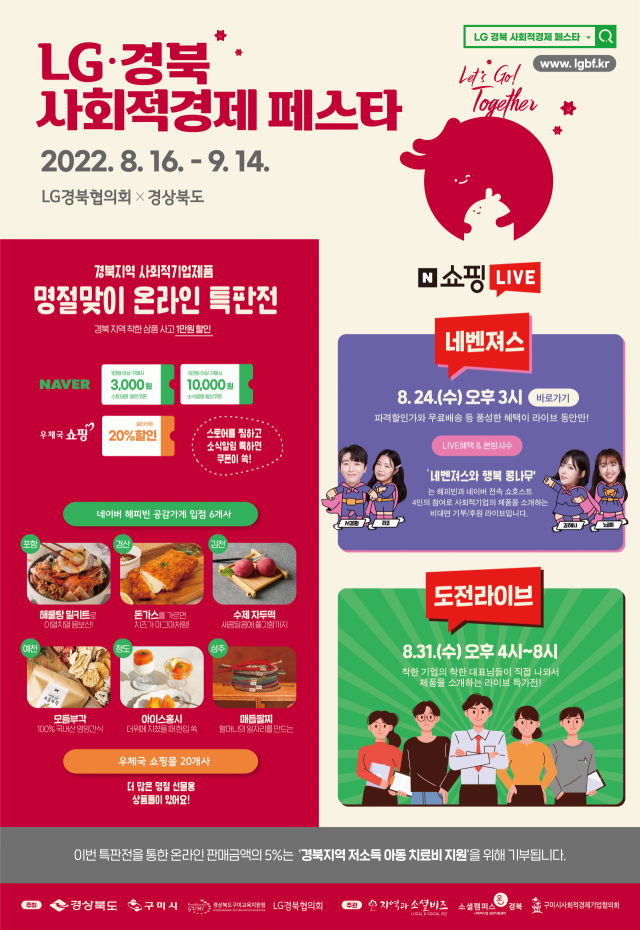 경북 구미지역 LG계열사 협의체인 LG경북협의회는 경상북도 및 사회적기업 성장지원센터, 경북사회적기업협의회와 함께 9월 14일까지 LG·경북 사회적경제 페스타 온라인 특판전 행사를 한다고 17일 밝혔다.