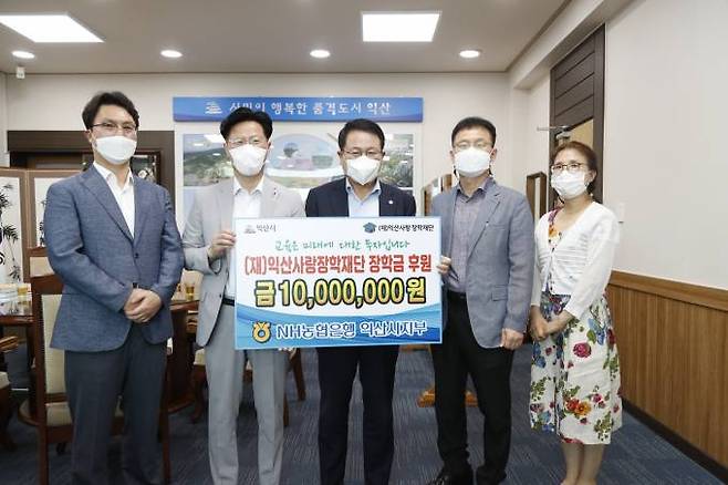 NH농협은행 익산시지부가 17일 지역인재 육성을 위해 써달라며 (재)익산사랑장학재단에장학금 1천만원을 기탁했다.