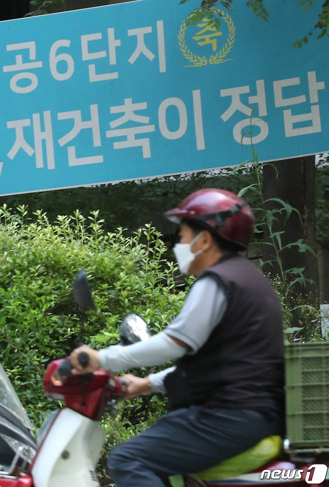 (서울=뉴스1) 송원영 기자 = 정부가 내년부터 2027년까지 5년간 서울에 50만 가구를 포함해 전국에 주택 270만 가구의 주택을 공급할 계획이다. 특히 재건축 안전진단과 부담금 등 규제를 대폭 완화해 재건축과 재개발로 서울에서 24만 채를 공급한다. 이는 1기 신도시인 분당신도시의 2.5배와 맞먹는 물량이다. 사진은 17일 서울 노원구 상계주공아파트에 걸린 재건축 관련 현수막 모습. 2022.8.17/뉴스1