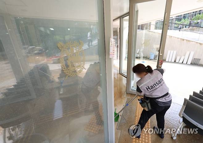 (서울=연합뉴스) 이지은 기자 = 지난주 내린 집중호우로 침수 등 피해를 본 서울대 사범대학이 2학기 대면 수업 일부를 비대면으로 전환하기로 한 가운데 17일 오후 서울 관악구 서울대학교 인문대학에 가구와 책들이 쌓여있다. 사범대와 인접한 인문대학도 일부 강의를 비대면으로 전환할지 내부적으로 검토 중이다. 2022.8.17