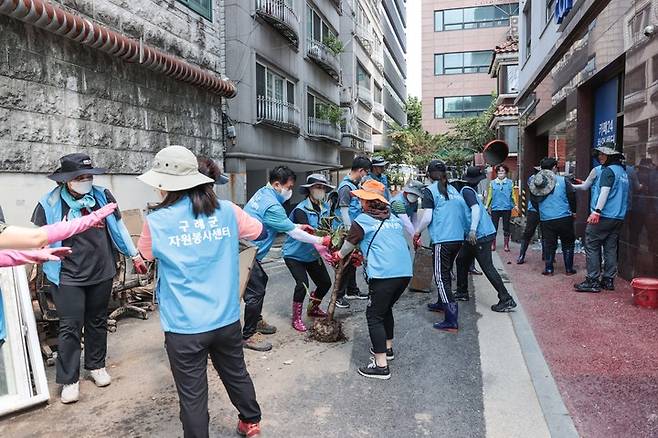 [구례=뉴시스] 김석훈 기자 = 김순호 구례군수와 군청 직원들이 서울 동작구 수해 지역을 찾아 피해 복구를 지원했다.