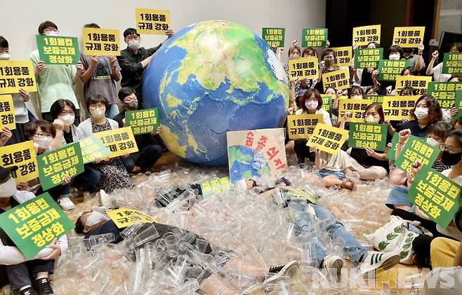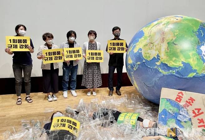 환경시민단체 , 일회용품 규제 강화 촉구 [쿠키포토]